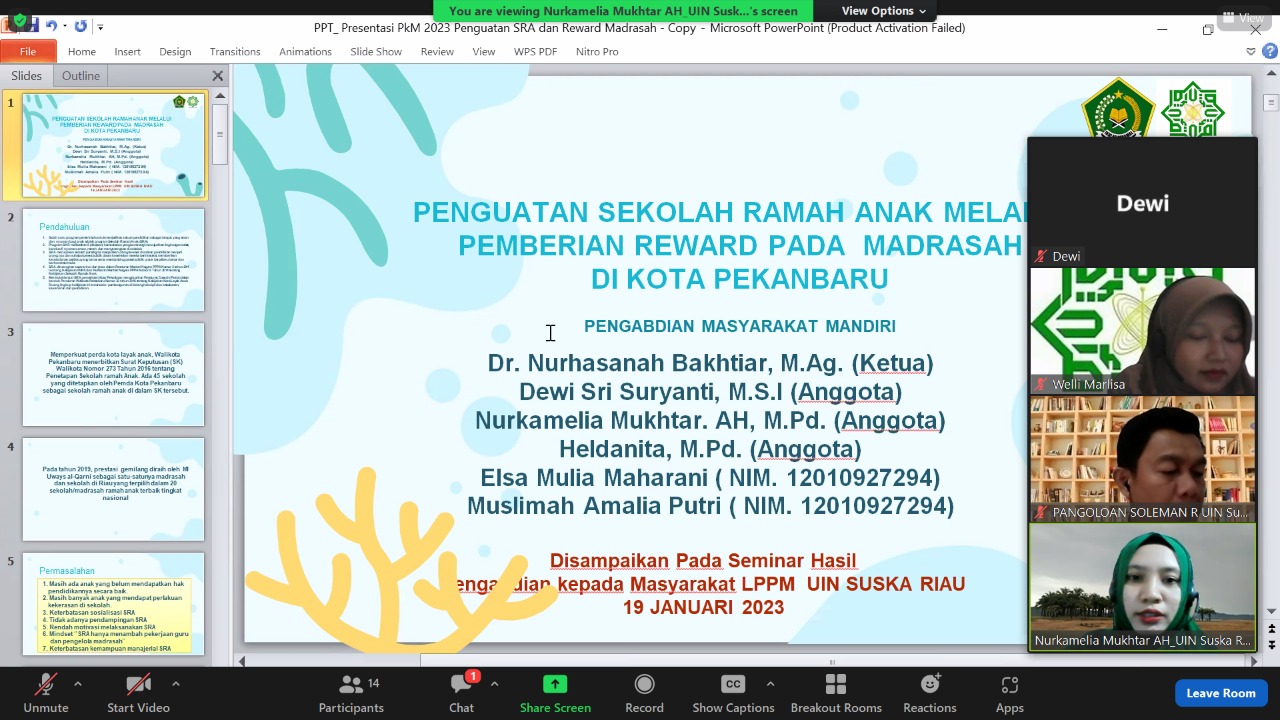 Kamis (19/01/2023), Tim Dosen PIAUD mengikuti Seminar Hasil Pengabdian di LP2M UIN Suska Riau via zoom Meeting. Seminar dimoderatori oleh Bapak pangaloan Soleman, M.Pd. dan Narasumber oleh Bapak Dr. Primadi dan Ibu Dr. Suka Erni, M.Pd. Kegiatan dibuka dengan Sambutan dan pengarahan oleh ketua LP2M Prof. Leny Nofianti. Dalam sambutannya beliau mengingatkan kembali agar setiap...Read More