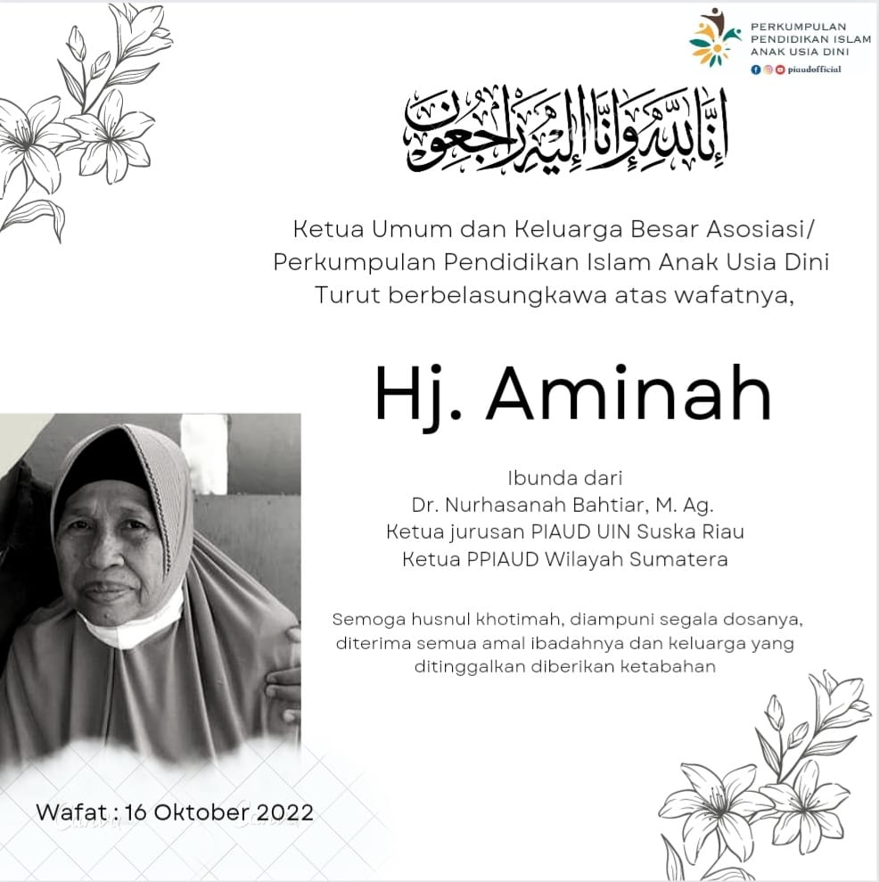 Innalillahi wainna ilaihi roji’un, Segenap Keluarga PIAUD UIN Suska Riau turut berduka cita yang mendalam atas berpulangnya ke Rahmatullah Ibunda dari Bunda Dr. Hj. Nurhasanah Bakhtiar, M.Ag. pada Ahad 16 Oktober 2022 di Rokan Hulu. Semoga Husnul Khotimah dan ditempatkan di sebaik baik tempat di sisiNya, Aamiin ya Rabbal’alamiin..Read More
